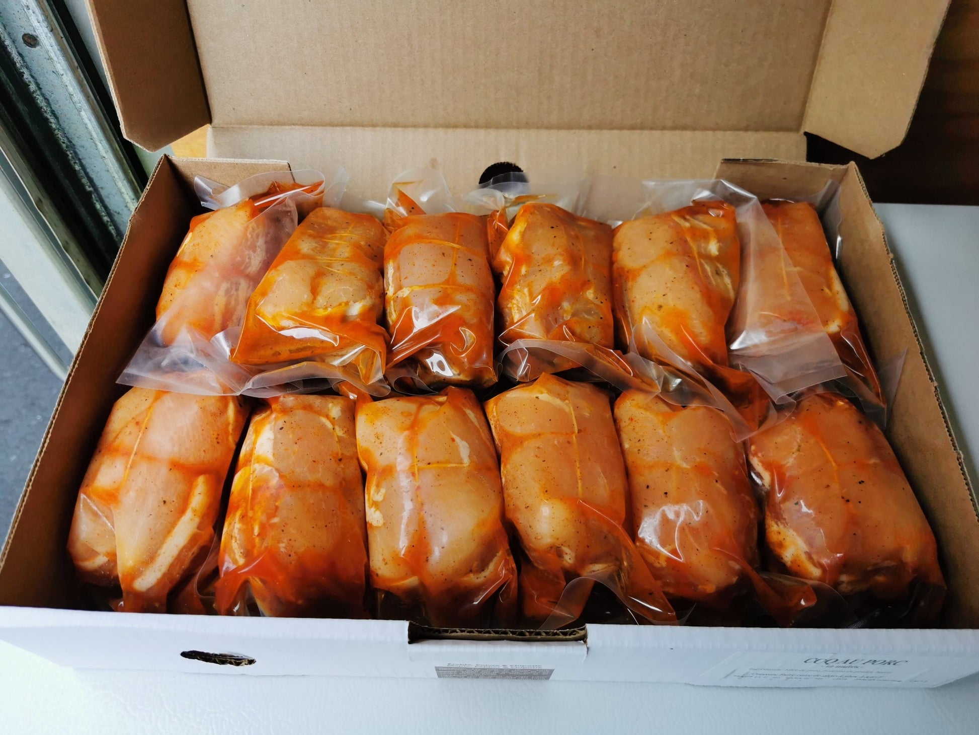 - 12 coq au porc érable et chipotle