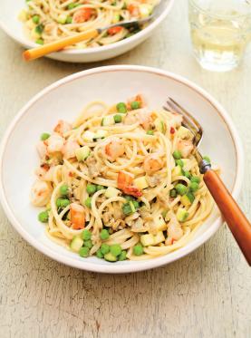 Ingrédients : Crevettes, pétoncles, sauce béchamel (lait, farine, huile de canola, oignon, céleri, brocoli, vin, sel, poivre et épices).